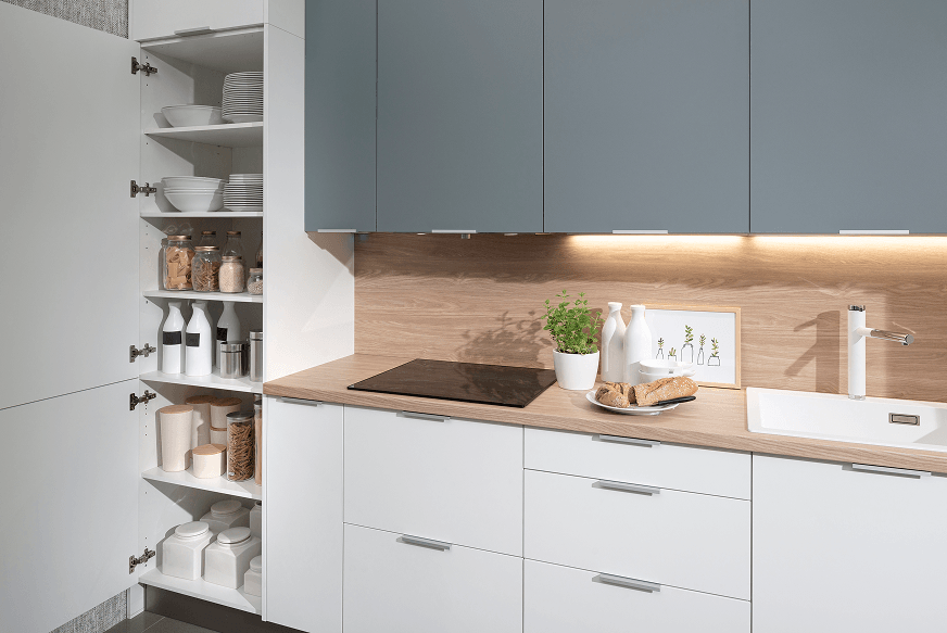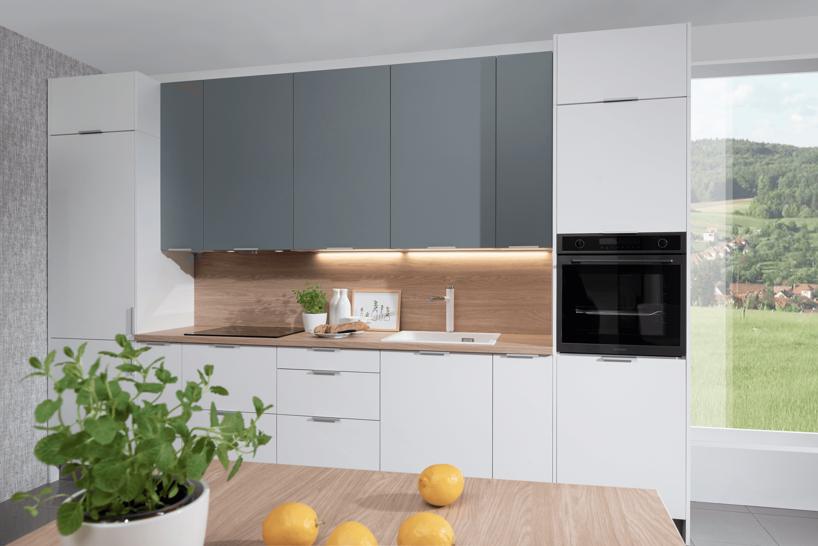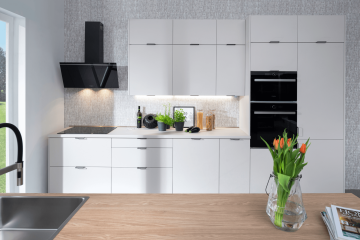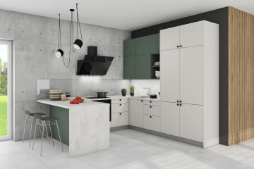 Moderní kuchyně HOME je ideální volbou pro ty, kdo chtějí hezký a moderní prostor. Díky sektorovému systému si ji jednoduše poskládáte podle svého, ať už máte malý byt, nebo rodinný dům s velkou kuchyní.