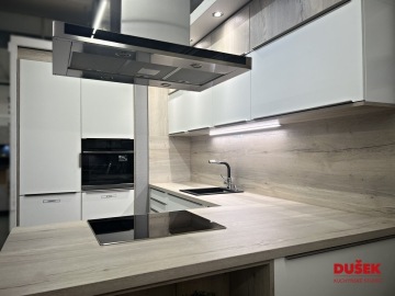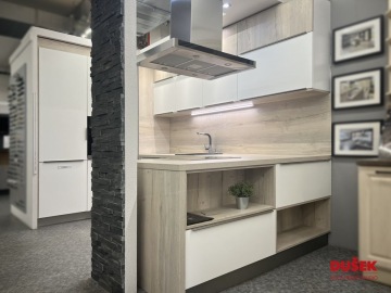 Moderní kuchyně Iris staví na čistých liniích a hladkých plochách bez úchytek, díky čemuž působí klidně a přehledně. Skryté spotřebiče a promyšlené řešení úložného prostoru vytvářejí jednolitý, minimalistický vzhled, který nepůsobí přísně, ale vyrovnaně a prakticky.