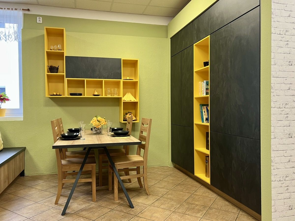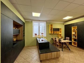- Rozměry: výklenky : 270 + 231 cm (zleva od kuchyňské části) + ostrůvek 223 × 116 cm + regálová stěna 150 × 152 cm (pohledové š × v)
