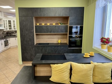 Moderní kuchyně Iris staví na čistých liniích a hladkých plochách bez úchytek, díky čemuž působí klidně a přehledně. Skryté spotřebiče a promyšlené řešení úložného prostoru vytvářejí jednolitý, minimalistický vzhled, který nepůsobí přísně, ale vyrovnaně a prakticky.