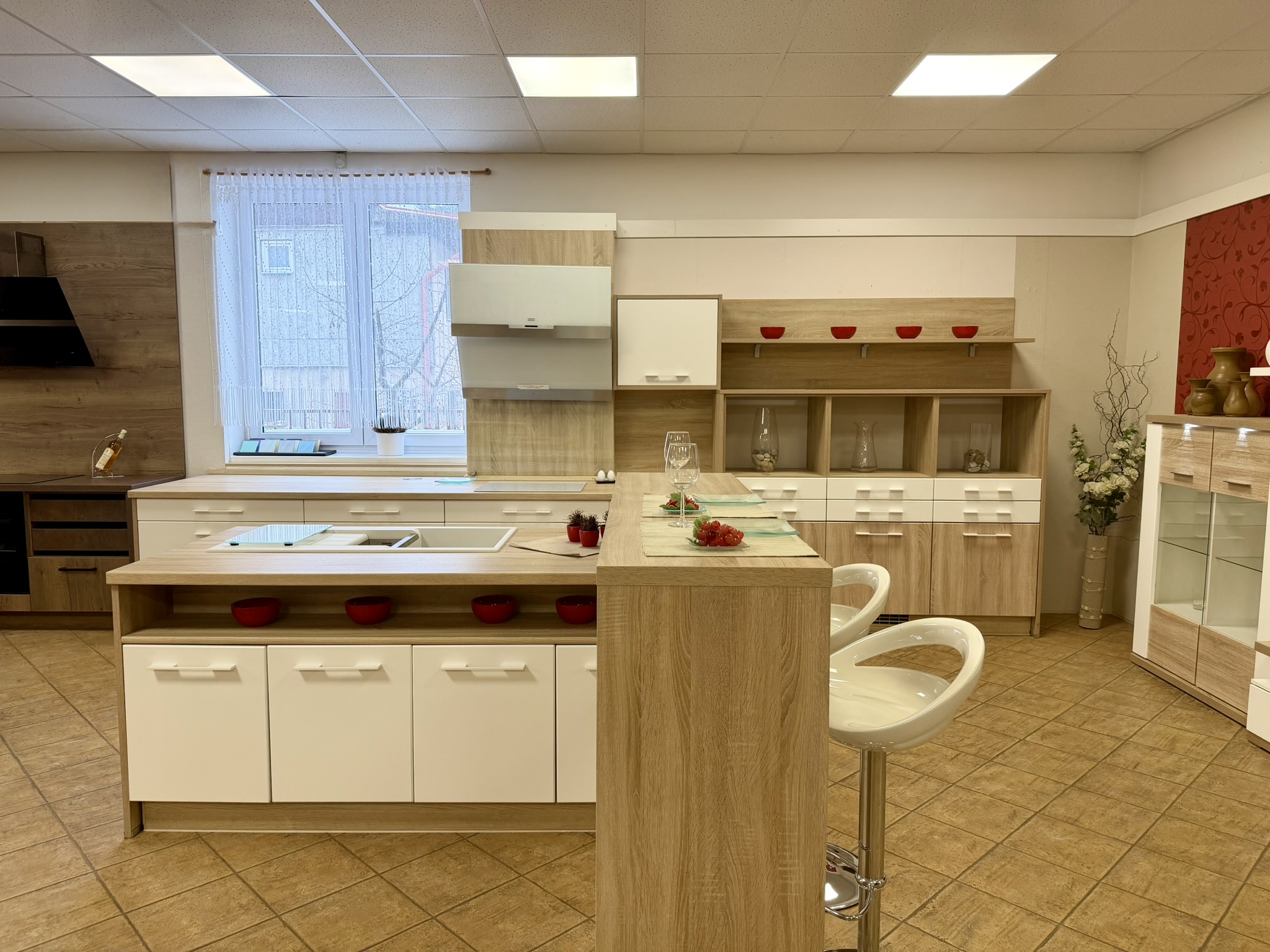 Cena je uvedená bez spotřebičů, dřezu, stolu, židlí, doplňků a kuchyňské sestavy Elis.