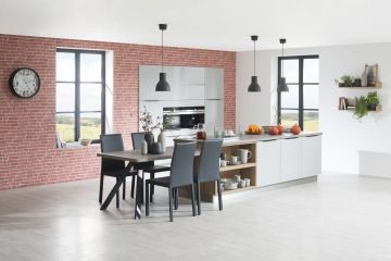 Dalno je kuchyně s čistými liniemi a hladkými plochami bez rušivých detailů. Nabízí moderní vzhled v matu, lesku i dřevodekorech a variabilní řešení od vestavných stěn po ostrůvky.